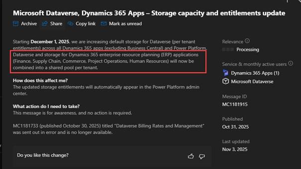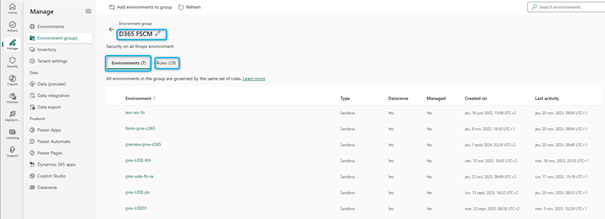 It is hoped that Microsoft will soon publish storage allocation by environment group, as currently this must be managed environment by environment.