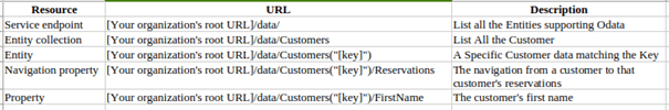 Supported Features of OData