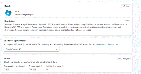 Spin up a new agent in Copilot Studio by following the usual flow, picking the right agent template and filling in the necessary information: